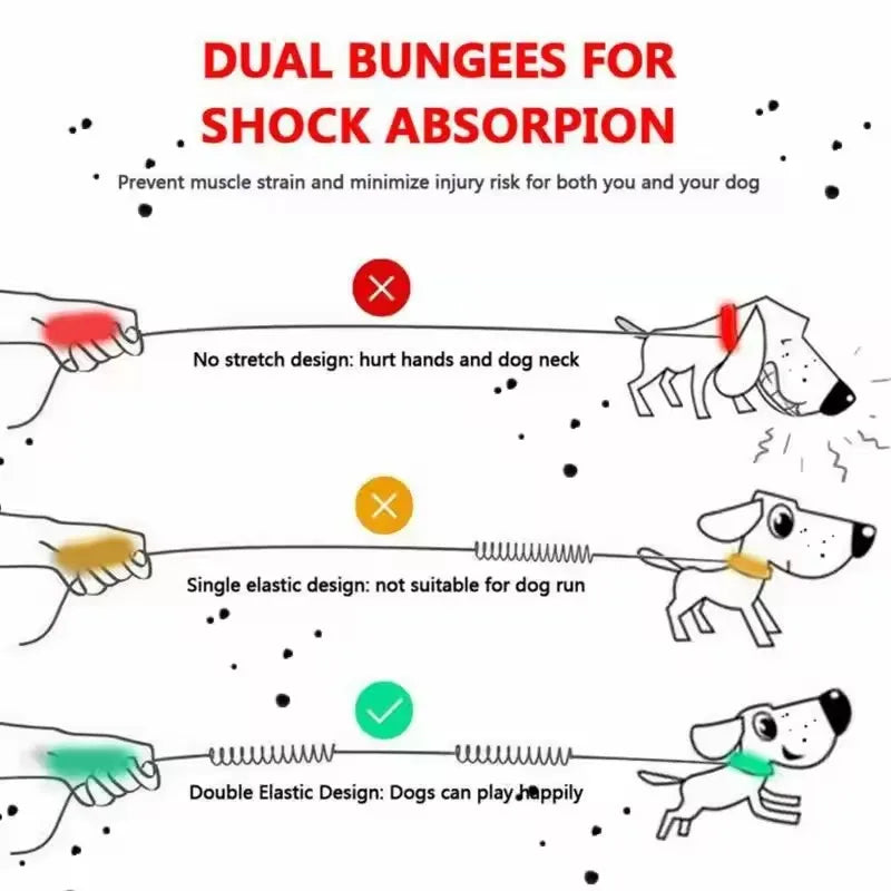 Outdoor Dog Leash – Dual Handle, Elastic, Hands-Free, Reflective Traction Rope for Running, Walking, and Night Safety